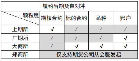 期权 买方 申请对其统一交易编码下的 行权后的双向期货持仓 进行对冲平仓,也可以申请对其同一交易编码下的 行权后获得的期货持仓与期货市场原有持仓 进行对冲平仓,对冲数量不超过行权获得的期货持仓量。