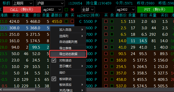 在报价表点击鼠标右键选择【导出动态数据】,然后到表格里点击粘贴,可以导出动态的报价数据。然后我们可以利用excel的工具进行一些计算或者编写自定义指标,指标会跟随实时行情变动而动态更新。