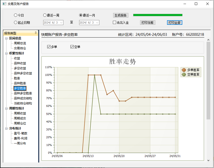 按多单、空单分别统计胜率情况。可以选择只看多单或只看空单。